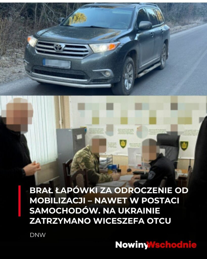 Państwowe Biuro Śledcze Ukrainy (DBR) poinformowało o postawieniu zarzutów zastępcy szefa Rówieńskiego OTCU (Obwodowego Terytorialnego Centrum Uzupełnień i Wsparcia) w związku z wymuszaniem łapówek za odroczenie od mobilizacji.