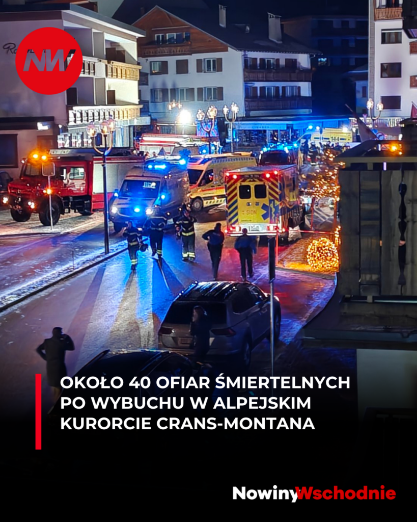 Szwajcarska policja uważa, że około 40 osób zginęło, a około 100 zostało rannych w wyniku pożaru, do którego doszło podczas sylwestrowej imprezy w alpejskim kurorcie Crans-Montana. W akcji ratunkowej wzięło udział 10 śmigłowców i 40 karetek.