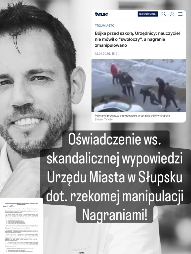 “Działając jako pełnomocnik matki pokrzywdzonego małoletniego ucznia, stanowczo sprzeciwiam się treści oraz formie komunikatu przedstawionego przez Urząd Miejski w Słupsku, który w sposób niedopuszczalny przesądza kluczowe kwestie faktyczne i dowodowe, mimo że w sprawie toczy się postępowanie karne.