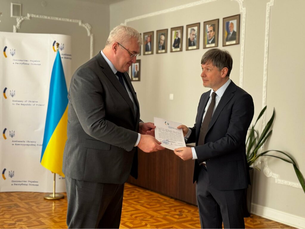 Ambasador przekazał, że Taras Tokarskyi otrzymał oficjalny patent konsularny od ministra spraw zagranicznych Ukrainy Andrii Sybiha.